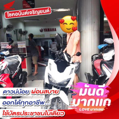 ออกมอเตอร์ไซค์ได้ง่ายๆ 🪪 “ใช้บัตรประชาชนเพียงใบเดียว” ก็ออกรถได้แล้วนะ!! ไม่ว่าจะเป็น “พนักงานบริษัท, ค้าขาย, ขายของออนไลน์, ส่งอาหาร, มอเตอร์ไซค์รับจ้าง, ผู้รับเหมา, อาชีพอิสระ“ ก็ออกได้