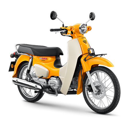 ไฟหน้าทรงกลมดีไซน์คลาสสิก ส่องสว่างคมชัด พร้อมกระจกดีไซน์เข้าคู่กัน เสริมความเป็นออริจินัลตามฉบับ Super Cub